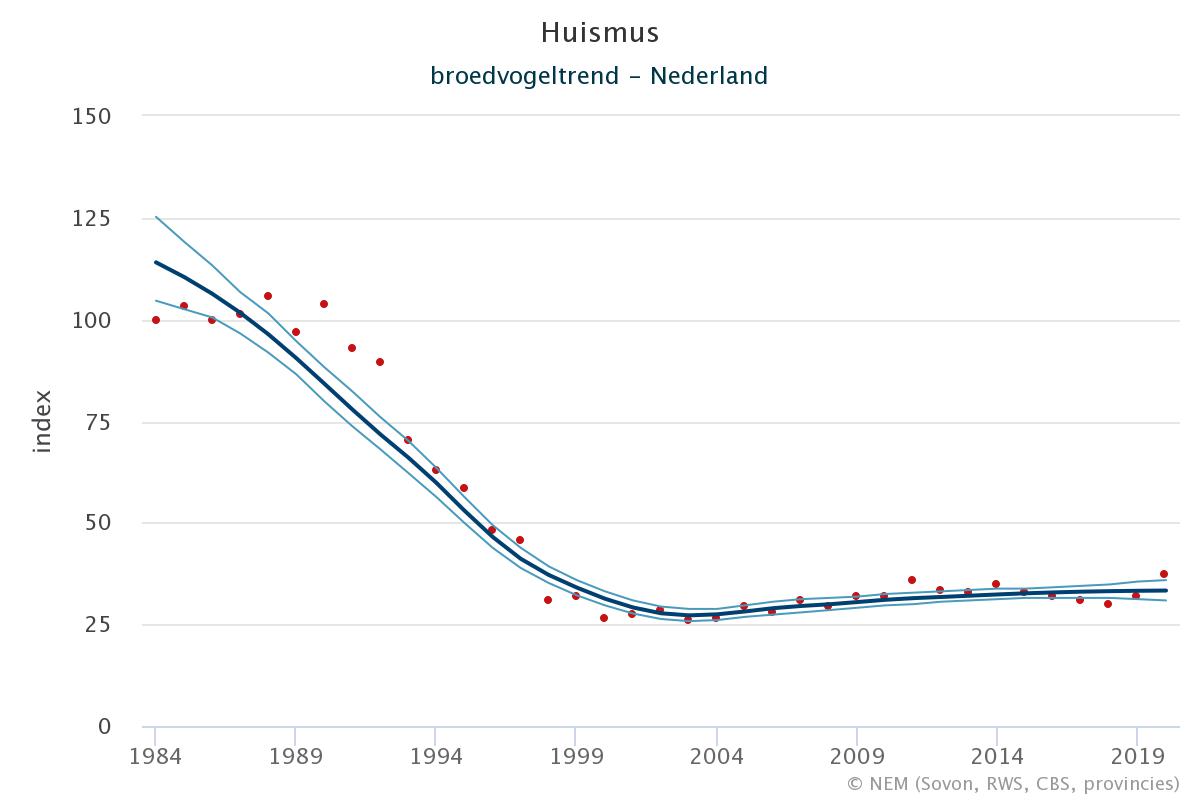 Het gaat al jaren niet goed met de huismus. De afgelopen decennia is het aantal huismussen meer dan gehalveerd. De oorzaken dat het slecht gaat met de huismus is: