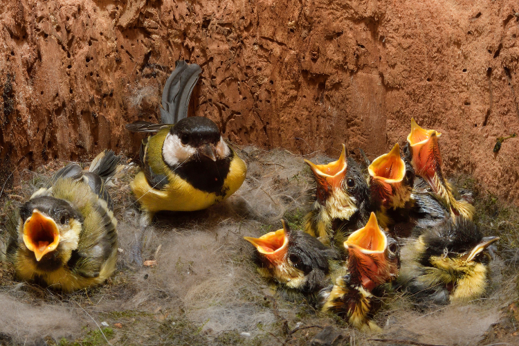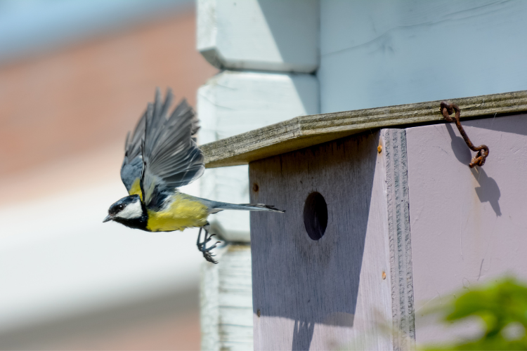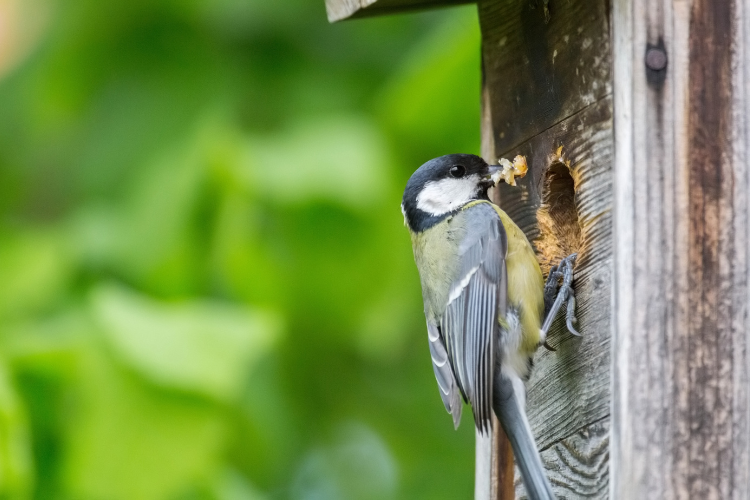 De koolmezen hebben gebrek aan nestruimte, dus een nestkastje in de tuin is zeer gewenst. Hang het vooral niet in de volle zon.